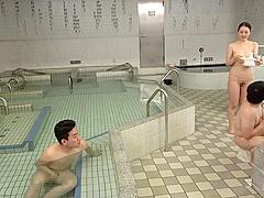 スレンダーな人妻と素人乱交!大浴場で濃密な時間を過ごしました!